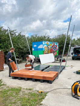 Adossé à la Gare de l’Ouest de Bruxelles, MolenWest est un site en gestion transitoire dessiné par le bureau bruxellois 1010 architecture urbanism (Brussels Architecture Prize 2021) dans un quartier qui souffre de la densité et du manque d’espace de respiration. Le lieu est équipé d’espaces couverts ou fermés et d’une grande dalle de béton bordée d’un tiers paysage longeant les voies ferrées. Les ateliers pédagogiques, les cours de vélo ou les matchs de foot s’organisent grâce à l’énergie des deux associations présentes sur place et d’un gardien vivant sur le site.